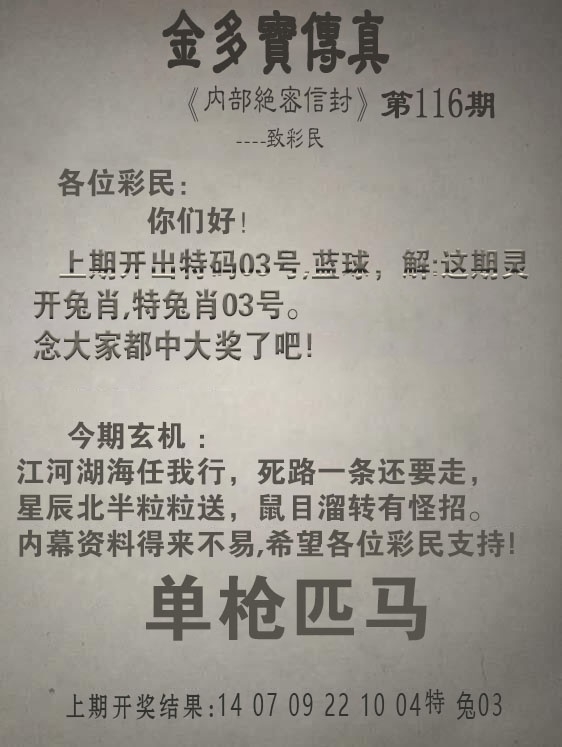 2025116期:金多宝传真