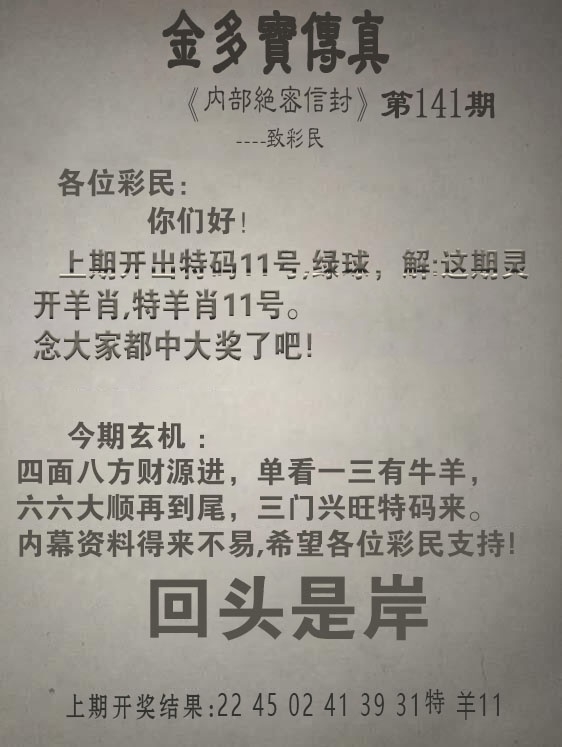 2025141期:金多宝传真